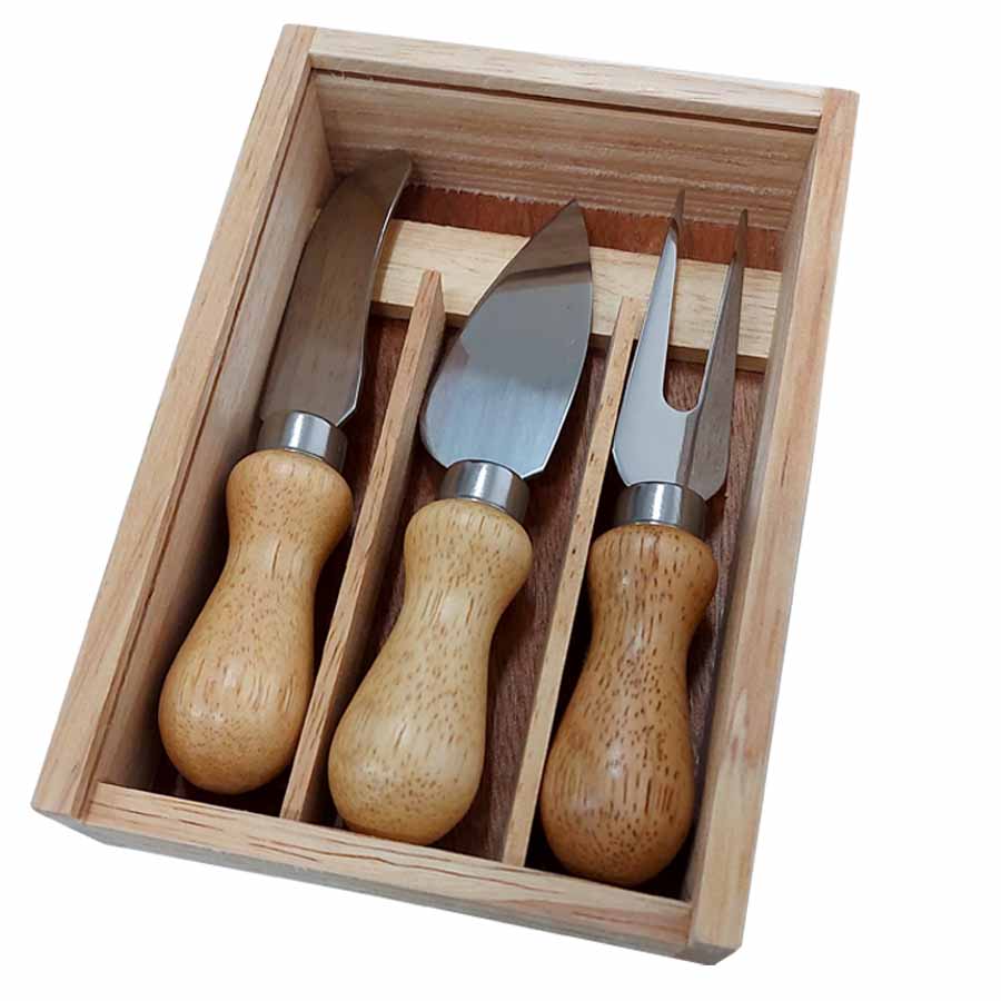 Conjunto de Talheres para Queijo Kit 3 Peças Aço Inox e Bambu com Estojo Su200341