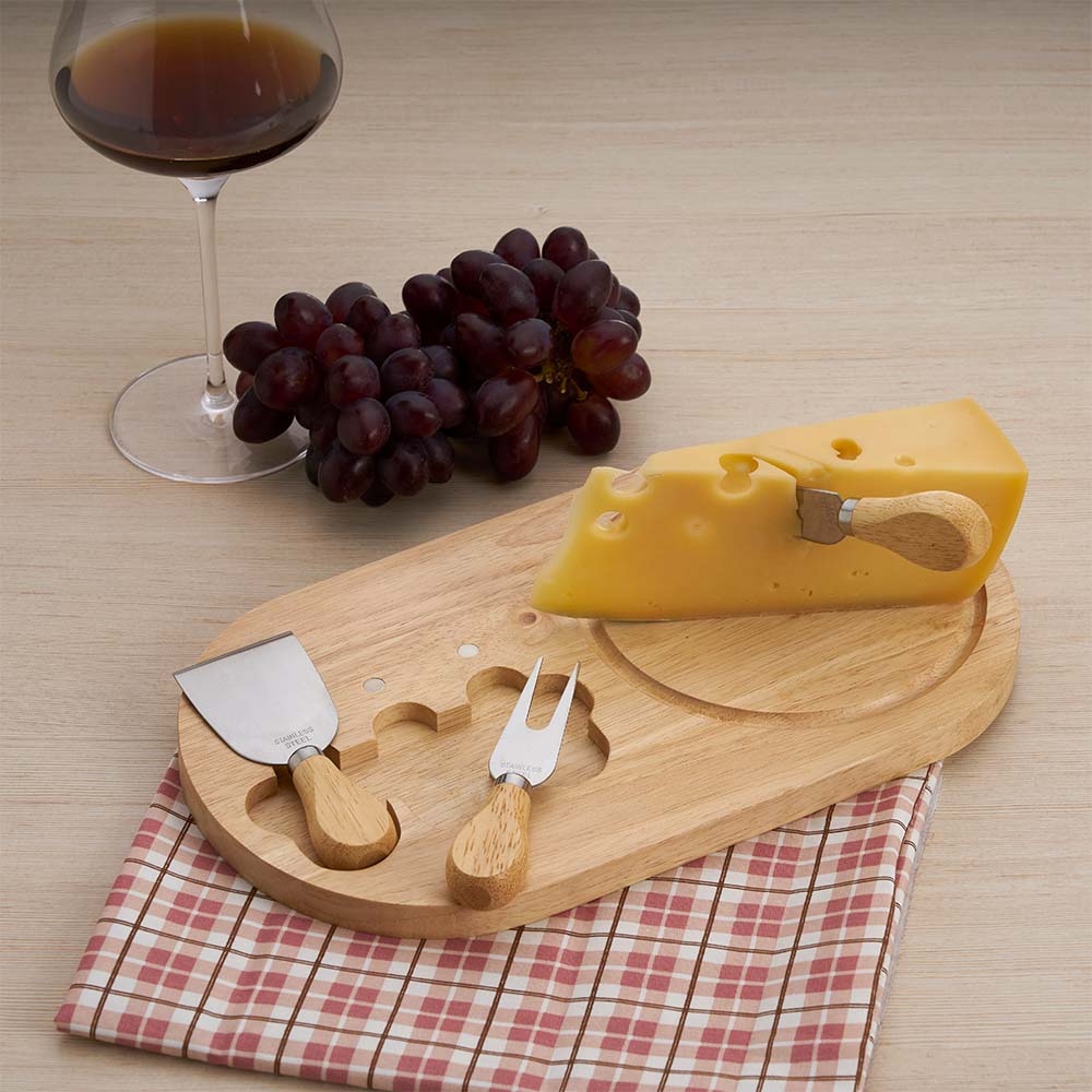 Conjunto de Tábua de Queijos e Frios 3 Peças em Bambu e Aço Inox Sg03839