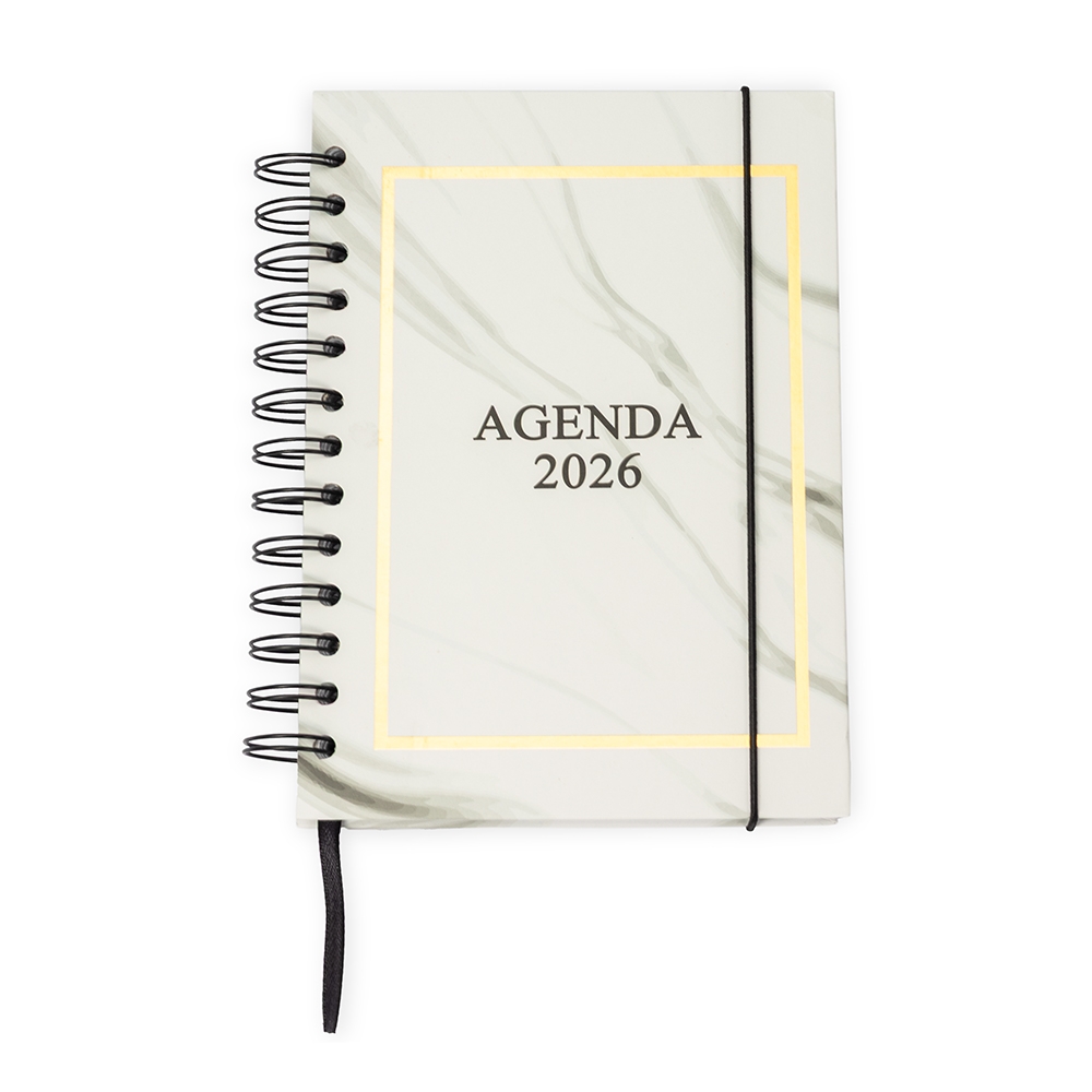 Agenda diária em capa dura, encadernação Wire-O, elástico de fechamento e marca-páginas em cetim. Contém ainda páginas dedicadas a dados pessoais, calendários de 2026 a 2028, planejamento mensal e lista de contatos. Altura :  18,8 cm Largura :  14,7 cm Espessura :  2,5 cm