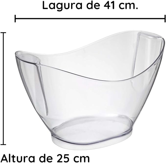 Champanheira Acrílica Cristal Oval Balde de gelo material super resistente e lindo para servir garrafas de bebidas, em bares, restaurantes ou até mesmo na sua casa. O Acrílico Oval proporciona maior versatilidade e requinte, para seus convidados. Ideal para servir garrafas ou long necks em mesa ou no bar. Seu material brilhante proporciona um visual bonito e clean. Capacidade: 5 Litros e 9.5L Material: Acrílico PS Diâmetro: Topo: 24cm | Base: 15cm Altura: 22cm Cores disponíveis- Cristal Características Gerais Alça para transporte Praticidade para gelar suas bebidas Pode ser utilizado como balde pegar gelo