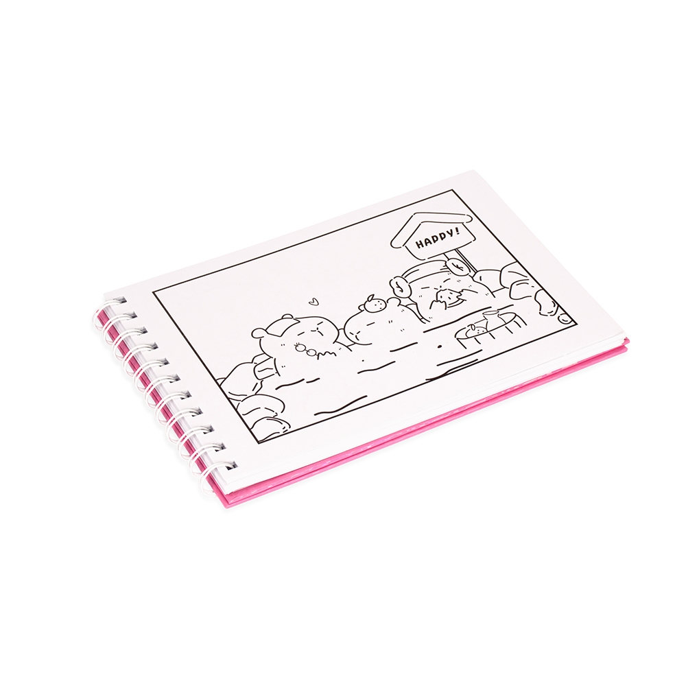 Caderno de colorir de capa dura com laminação holográfica e encadernação Wire-O. Possui aproximadamente 48 folhas contendo ilustrações de capivara e outros animais em situações leves e divertidas. Acompanha uma folha protetora destacável em acetato. Largura : 21,5 cm Espessura : 1,5 cm Comprimento : 14,7 cm