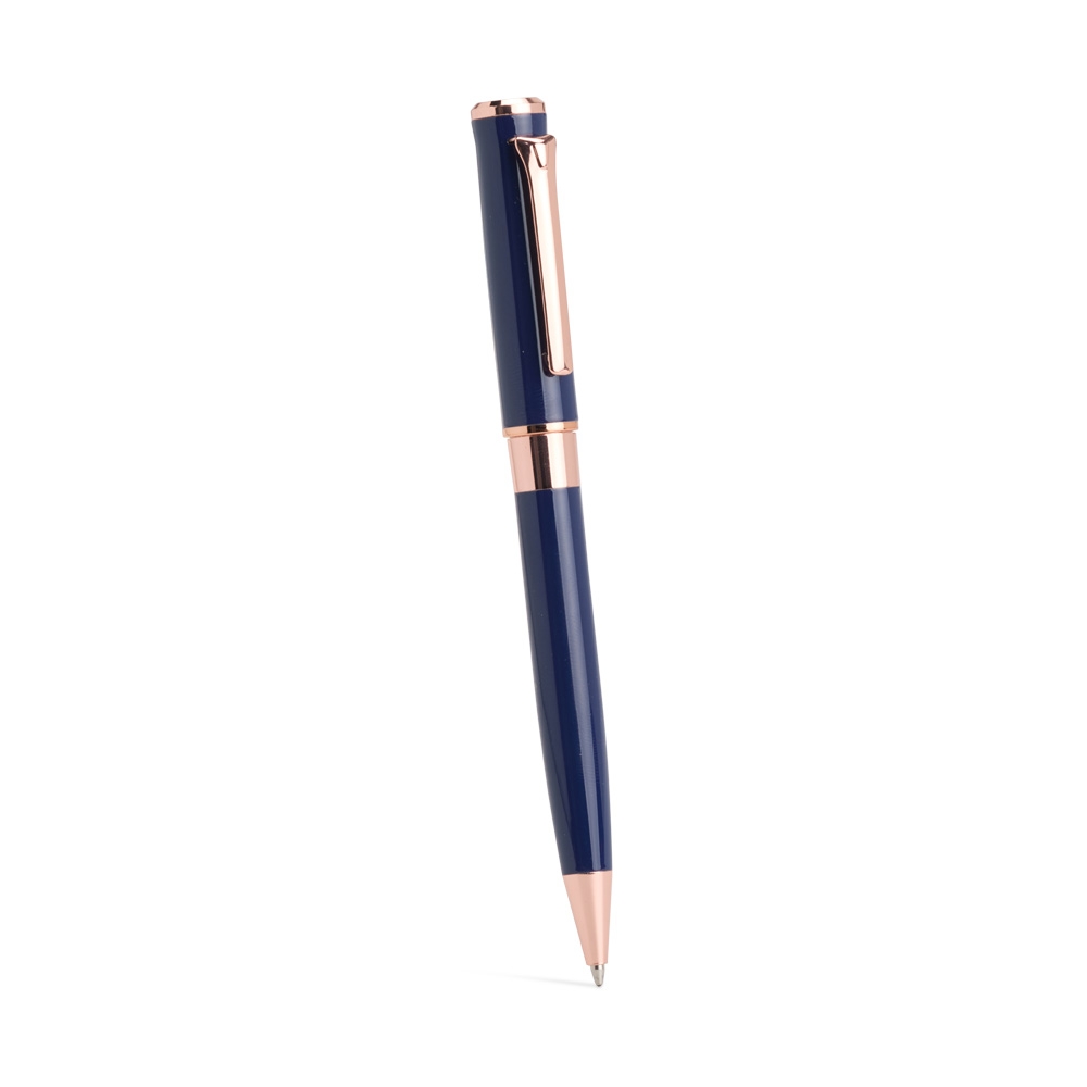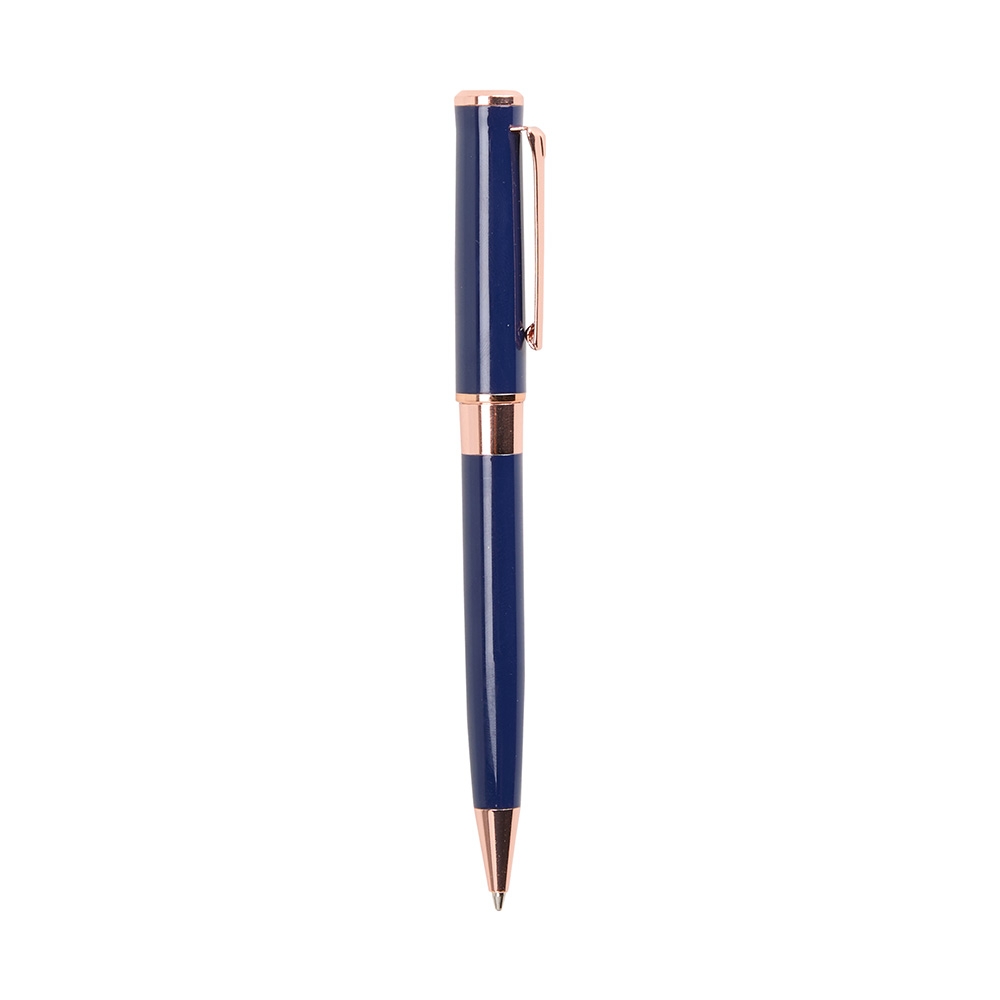 Caneta Executiva Metal esferográfica de carga azul de 1.0mm com acionamento por rotação e construção totalmente em metal, que proporciona uma pegada confortável para uma escrita mais precisa. Largura : 1,5 cm Comprimento : 13,5 cm