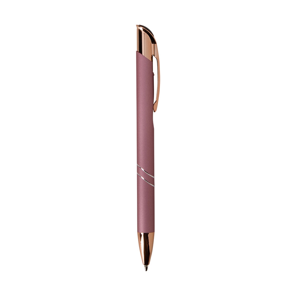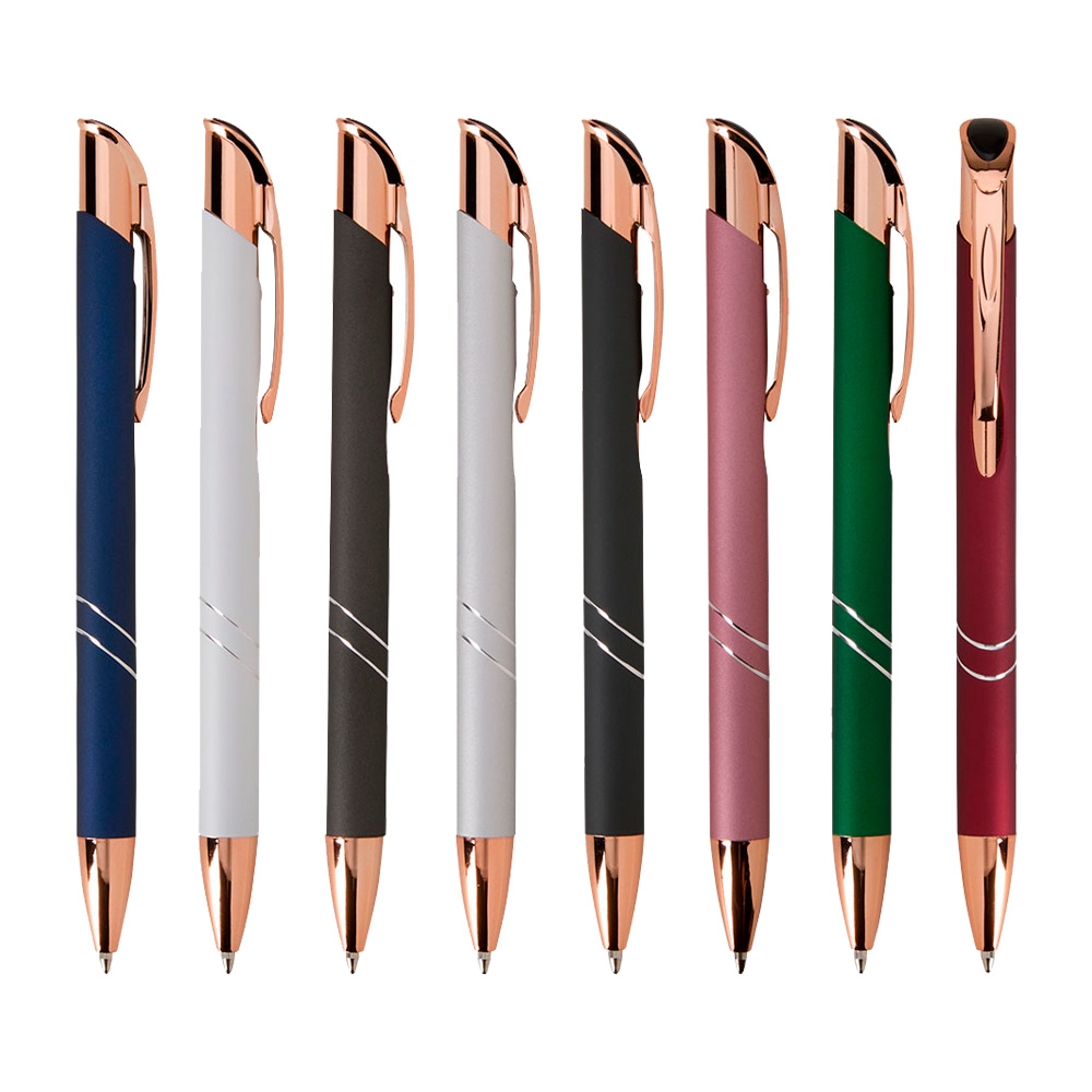 Caneta metálica com detalhes em plástico, acionamento por clique e carga esferográfica azul de 1.0mm, o que proporciona uma pegada leve e uma escrita precisa.Largura : 1,4 cm Comprimento : 13,8 cm