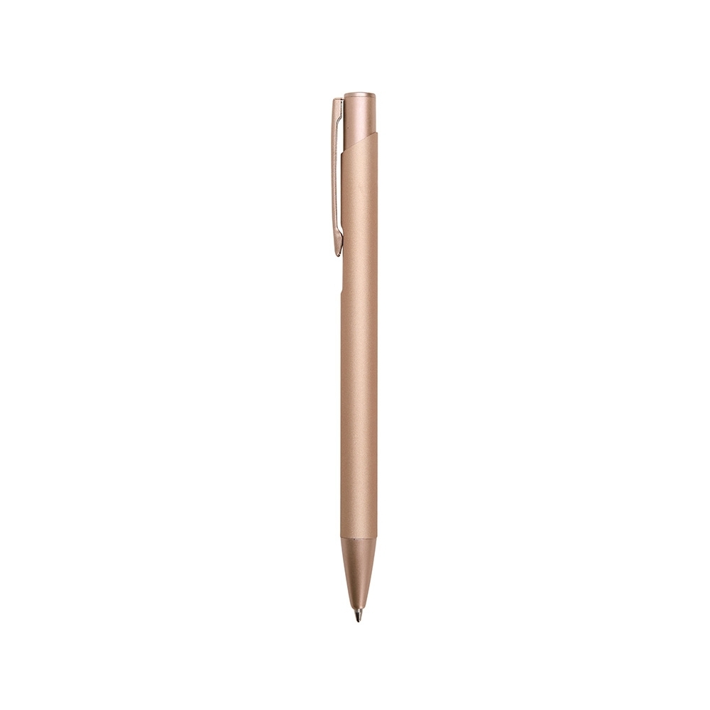 Caneta metálica com ponta e clip em plástico. Possui acionamento por clique e carga esferográfica azul de 1.0mm. Largura : 1,3 cm Comprimento : 13,6 cm