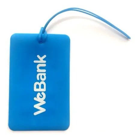 Case para Tag de Mala Identificador de Bagagem Emborrachado, espessura 2mm, modelo retangular, cantos arredondados, corte em solda eletrônica. Tamanho 10,2cm x 6,4cm impressão frente alto relevo até 2 cores, verso 1 cor impressão padrão,  fundo colorido Pantone de cores. cordão emborrachado na cor escolhida pelo cliente.