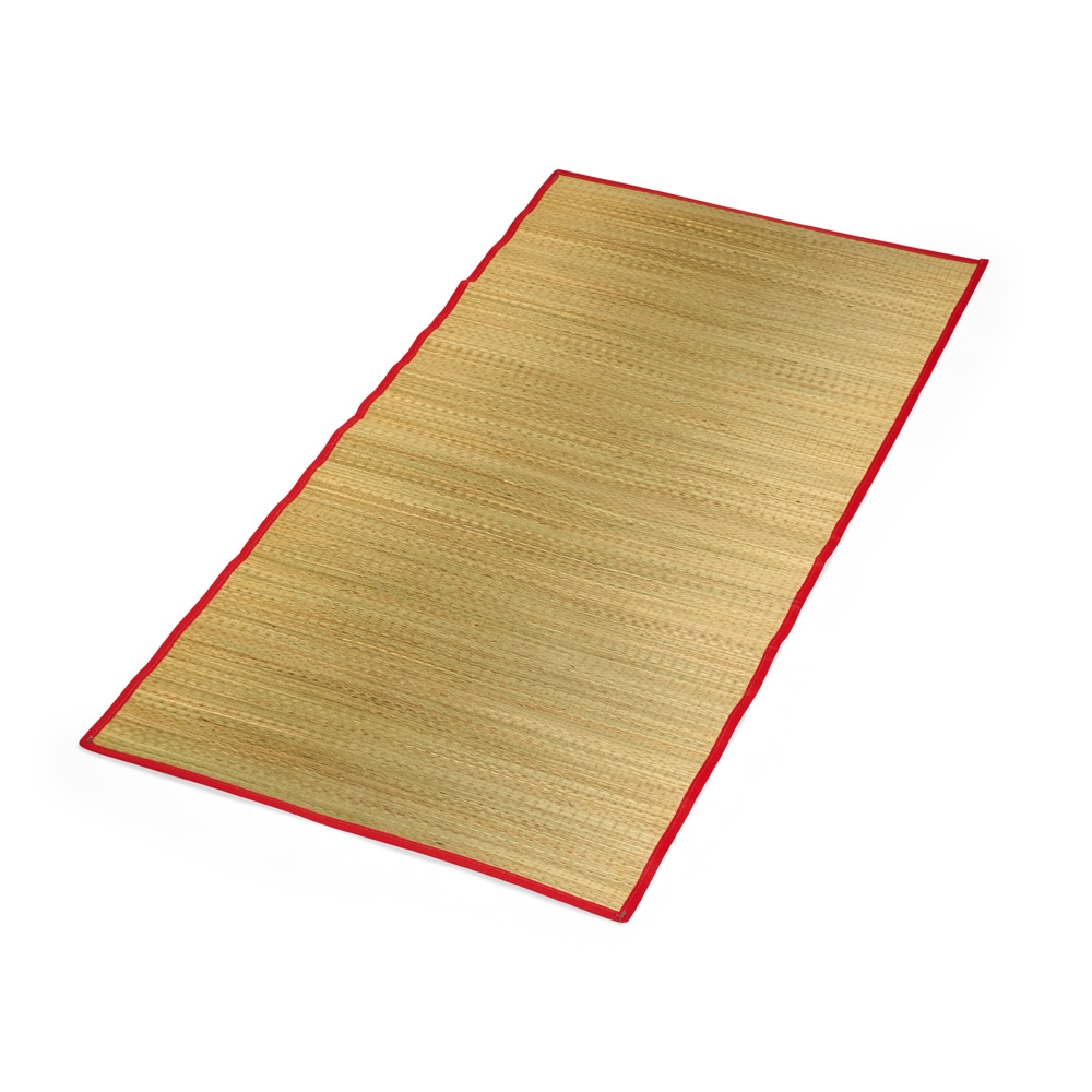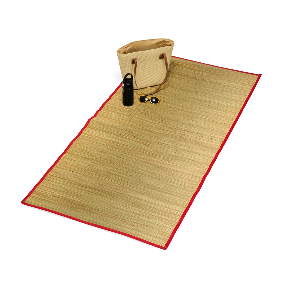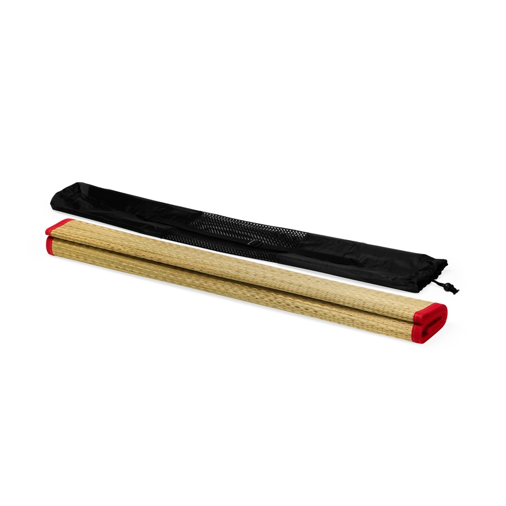 Esteira dobrável em palha sintética com bordas costuradas em nylon dividindo a esteira em três partes. Além disso, possui um par de alças costuradas para transporte. Largura : 90 cm Espessura : 0,1 cm Comprimento : 170 cm