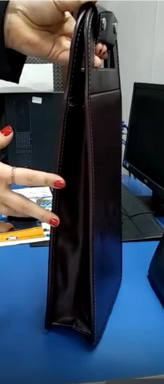 Estojo Porta Vinho para 2 garrafas com Alça em Couro Sintético Produto Artesanal Revestimento em Couro Sintético Costurado Com divisória Fechamento com botão Tam 19cm x 44cm x 7cm