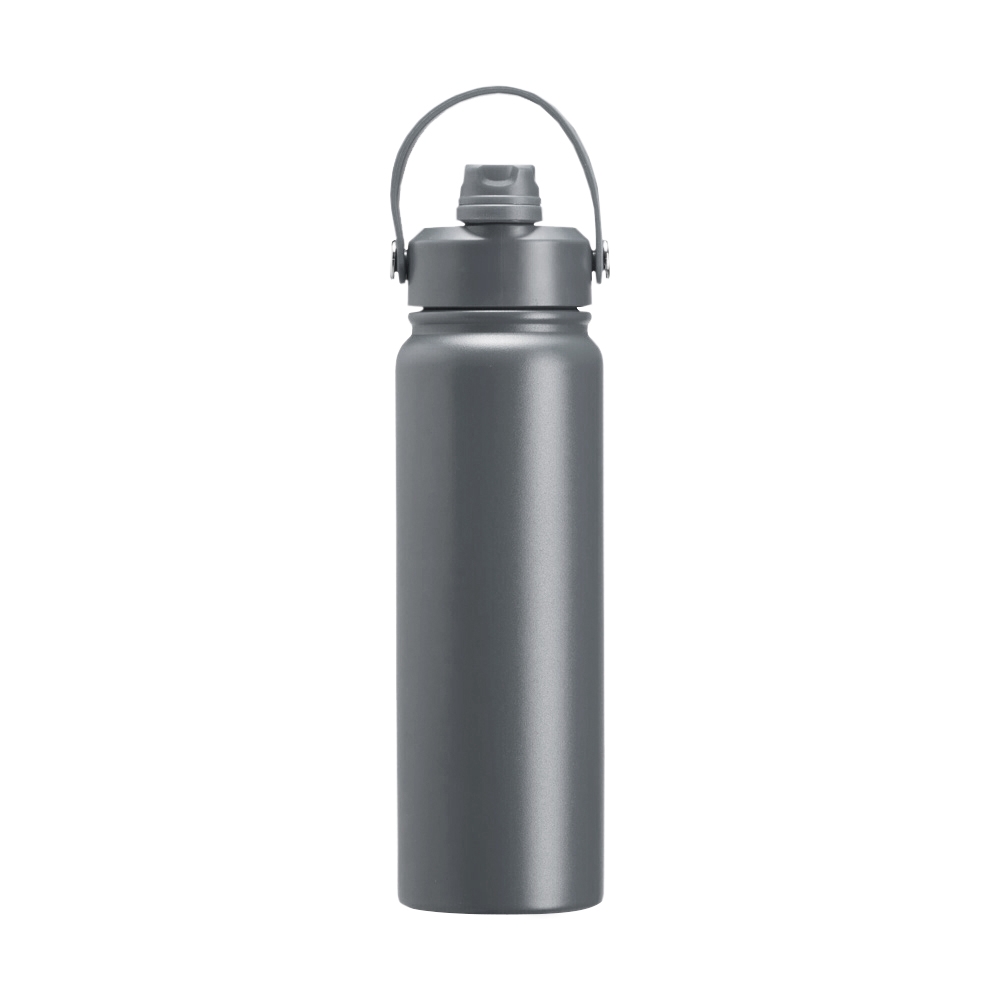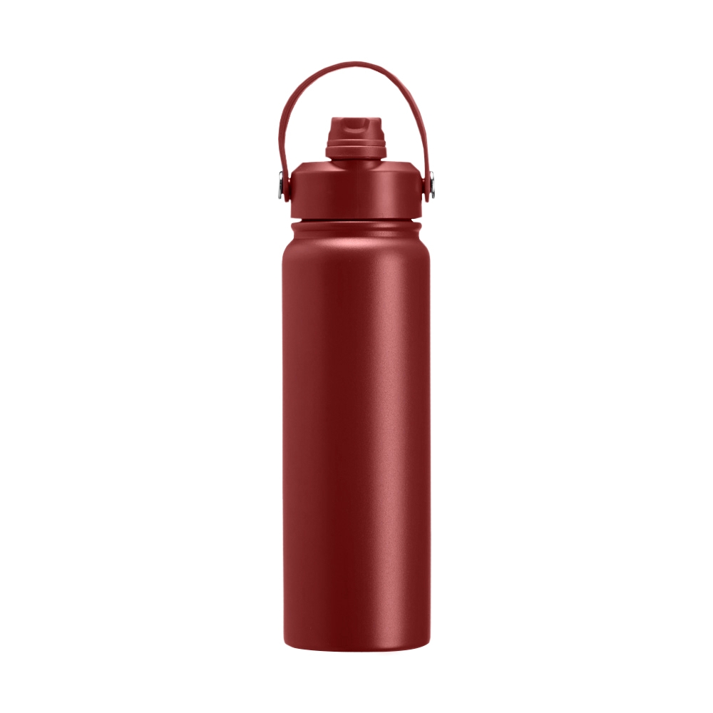 Garrafa térmica em inox com pintura eletrostática e capacidade máxima de 800ml. Possui estrutura interna de parede dupla em inox 304 e vedação a vácuo que permite a manutenção de temperatura de líquidos por mais tempo. Possui tampa rosqueável feita em plástico com proteção para o bocal, bico flip, canudo interno removível e alça fixa maleável para transporte. Altura : 28 cm Largura : 8,2 cm Circunferência : 25,1cm