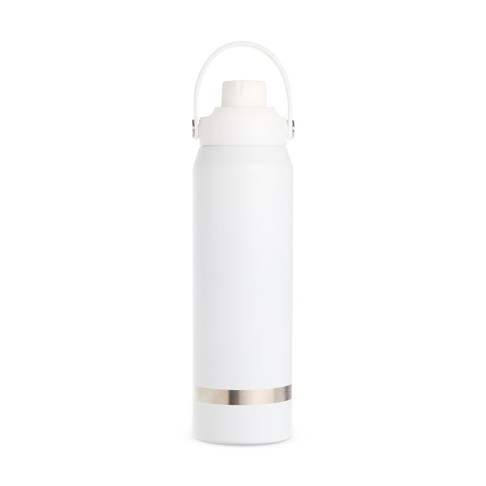 Garrafa térmica em inox 304 com capacidade para até 800ml. Possui estrutura de parede dupla e vedação a vácuo, permitindo a conservação da temperatura de líquidos por mais tempo. Conta ainda com tampa plástica rosqueável com protetor para o bocal, além de alça para transporte. Altura :  28 cm Largura :  8 cm Circunferência :  25,2 cm