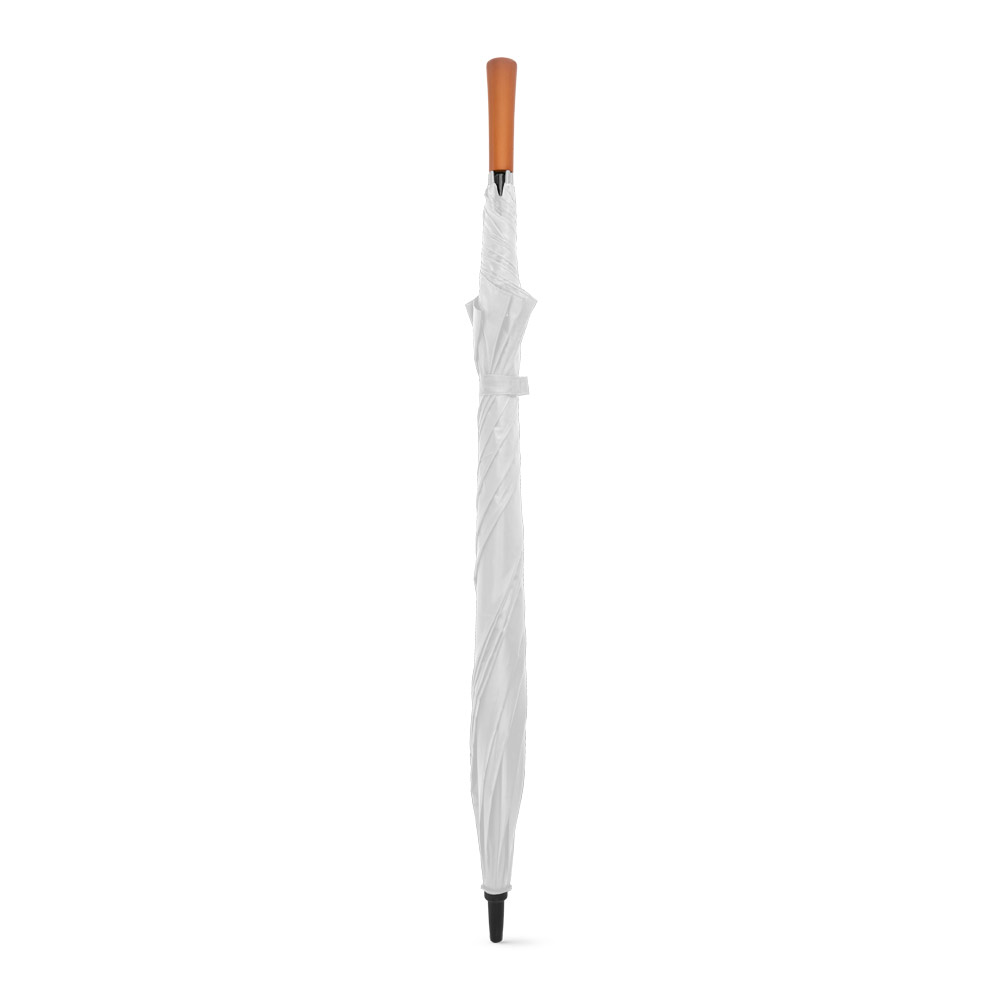 Guarda-chuva de Portaria em Poliéster pongee 190T, com varetas e haste em fibra de vidro e pega em madeira. ø1375 x 855 mm