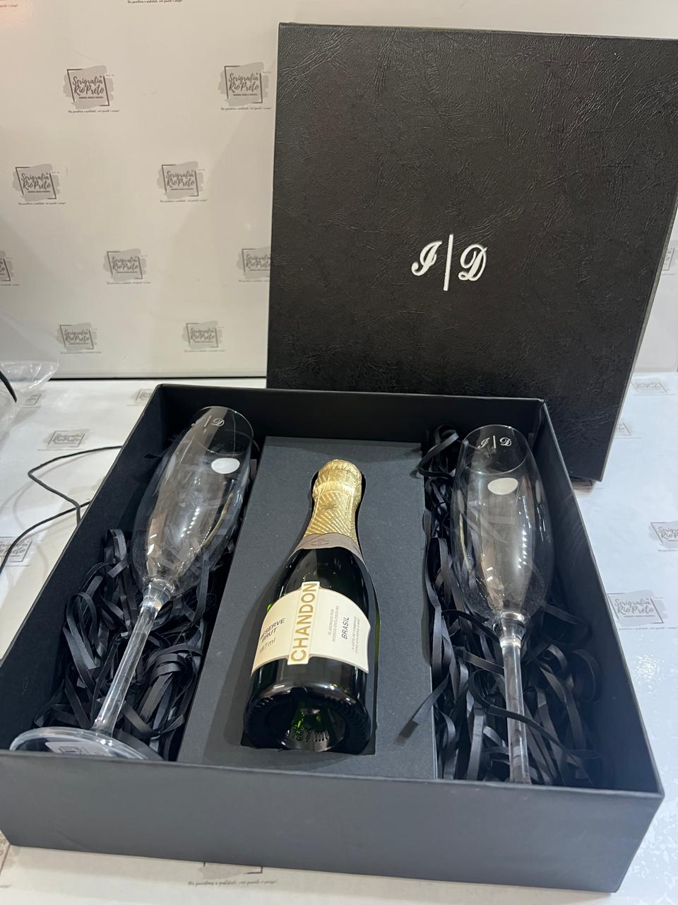 Kit Executivo de Vinho Mini Chandon Caixa Cartinada com 1 Mini Chandon 153ml, e com Mini Chandon e 1 ou 2 Taças de Cristal Gravadas a Laser Personalizada para Presente. Um Brinde sofisticado para celebrar os bons momentos de clientes, parceiros de negócios e colaboradores Skitvinho