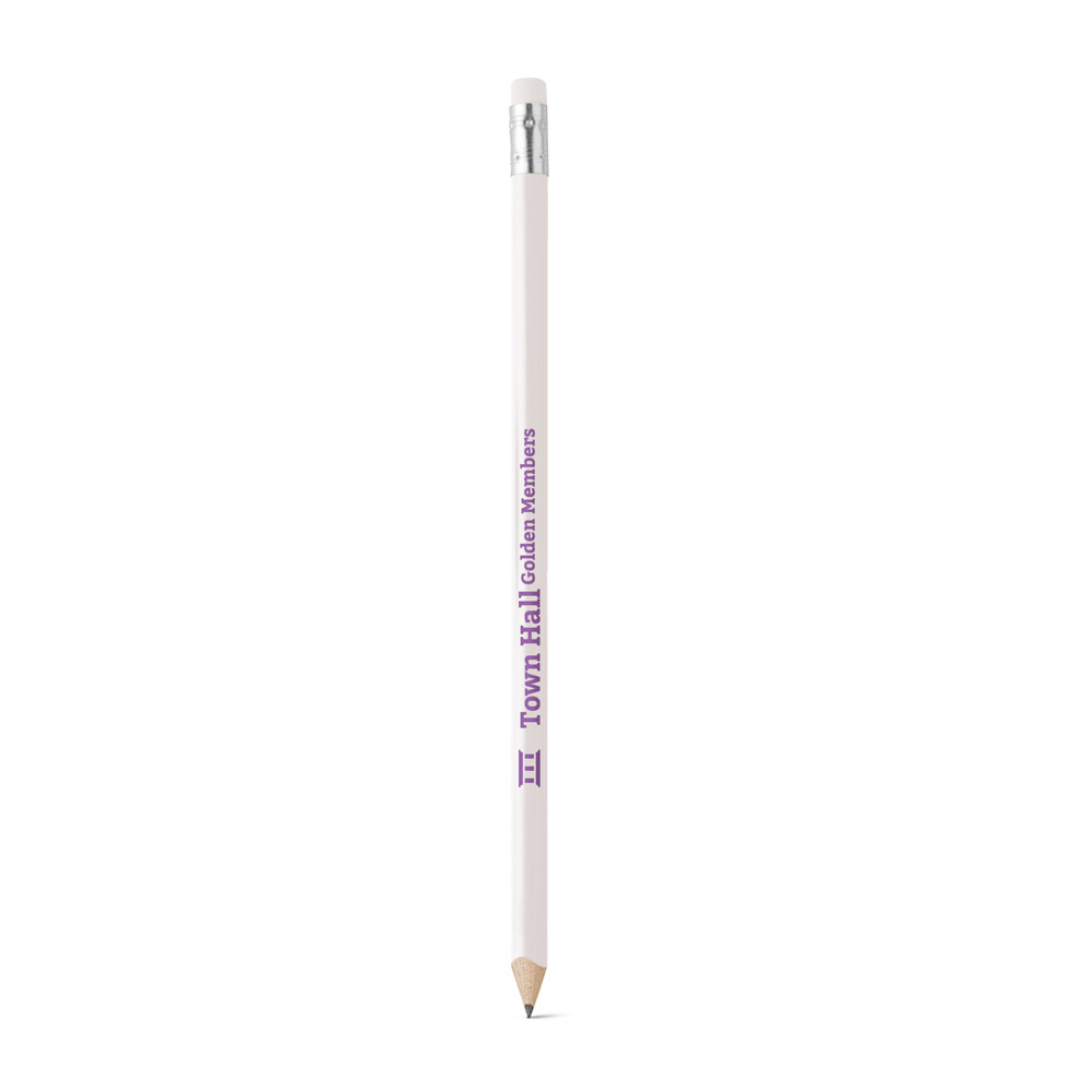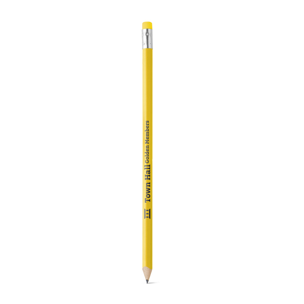 Lápis apontado com borracha. Grau de dureza: HB. Produto certificado de acordo com a portaria Inmetro nº423 de 8/out/2021 e entregue já apontado. ø7 x 190 mm