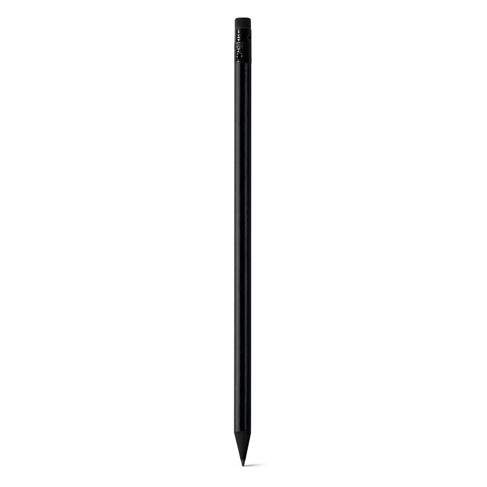 Lápis apontado com borracha. Grau de dureza: HB. Produto certificado de acordo com a portaria Inmetro nº423 de 8/out/2021. A cor e o resultado da impressão nos materiais naturais pode variar entre produtos. ø7 x 190 mm