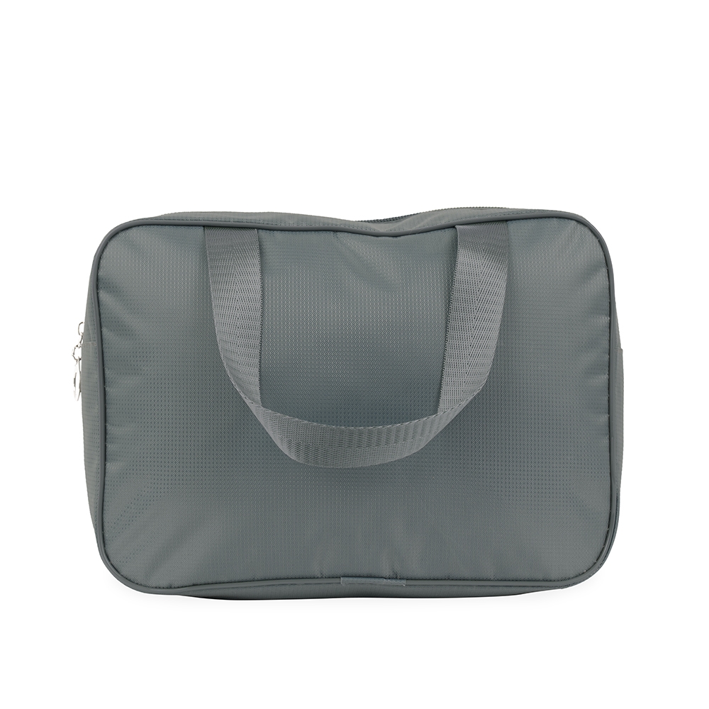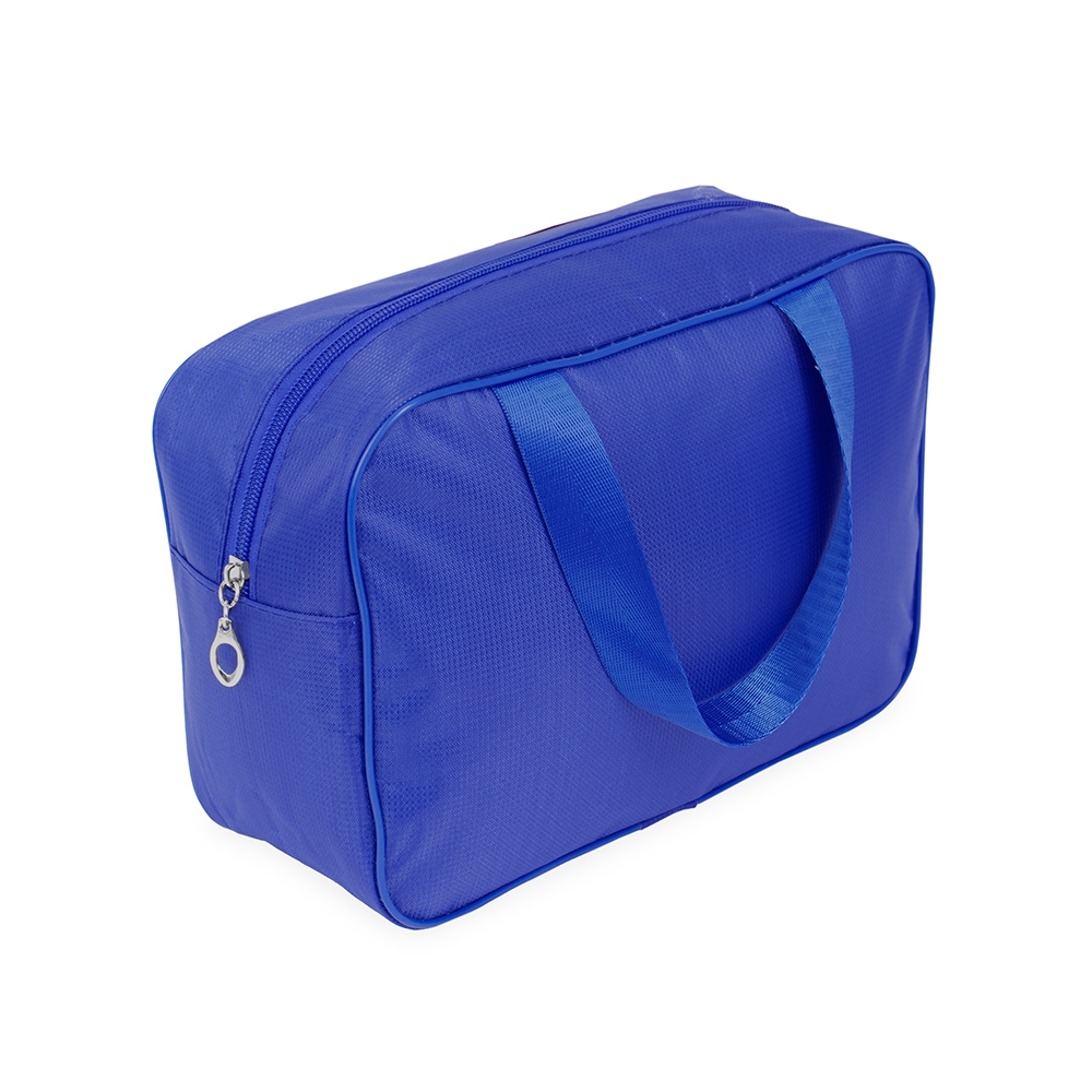 Nécessaire impermeável confeccionada em Poliéster e revestimento interno em PVC. Possui fechamento em zíper e duas alças em nylon. Altura : 18 cm Largura : 25 cm Profundidade : 9,5 cm Alça 32 cm