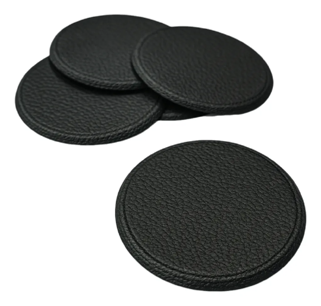 Porta Copo Bolacha de Chopp Emborrachado Textura Couro para Copos, Taças, Canecas Antiderrapante e de fácil limpeza. Sofisticação e praticidade em cada detalhe, ideal para proteger sua mesa contra riscos, manchas e marcas, trazendo um toque de luxo e elegância em qualquer ocasião, seja no dia a dia ou em momentos especiais. Em PVC Emborrachado com textura de couro que remete ao couro verdadeiro 9,5 cm de diâmetro x 0,03 cm de espessura, redondo, cores preto, caramelo e cinza.