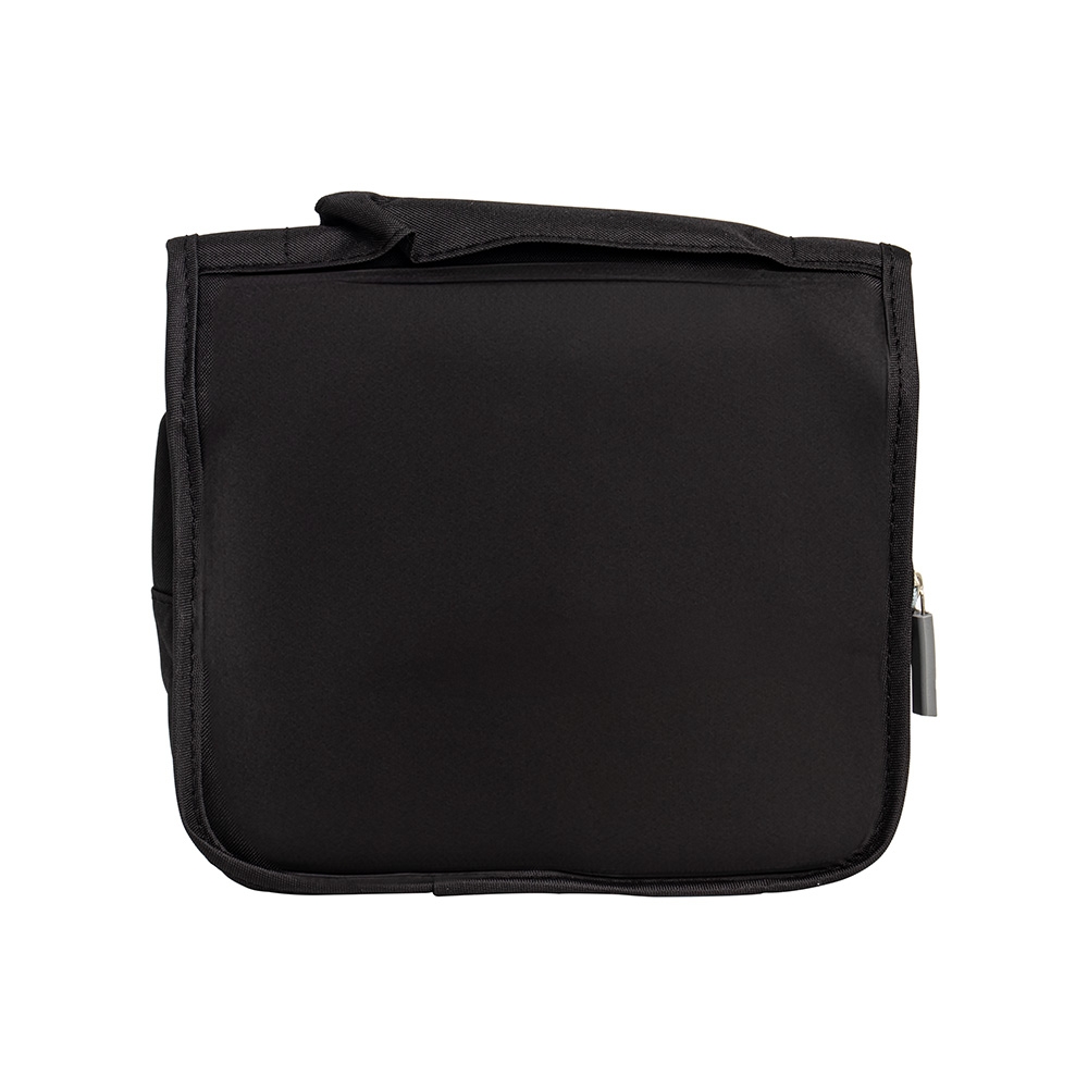 Nécessaire confeccionado em Nylon Oxford resiste à água. Possui compartimento principal com visor em tela de nylon e outros dois em formatos distintos: um em PVC com fechamento em zíper e outro em tela respirável de nylon. Conta ainda com gancho plástico para manter a bolsa pendurada enquanto aberta. Altura :  17 cm Largura :  19 cm Profundidade :  7 cm
