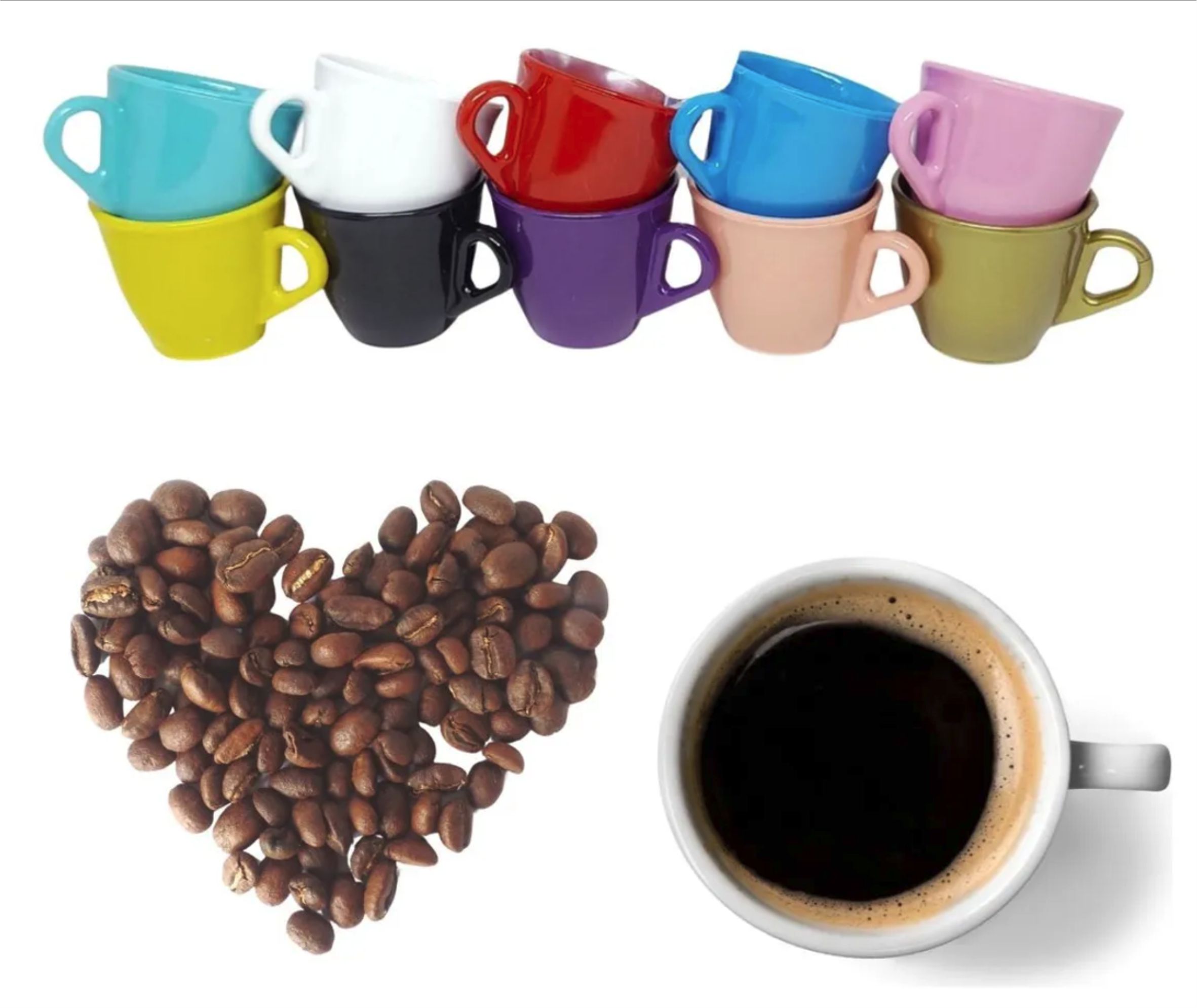 Xícara de Café 50ml Ceramica Colorida Mista é perfeita para servir cafés em casa, cafeterias, escritórios ou eventos sociais. As cores mistas e vibrantes adicionam um toque alegre e charmoso à mesa, Podem ser usadas no dia a dia ou em momentos especiais, combinando com diversos estilos de mesa.
