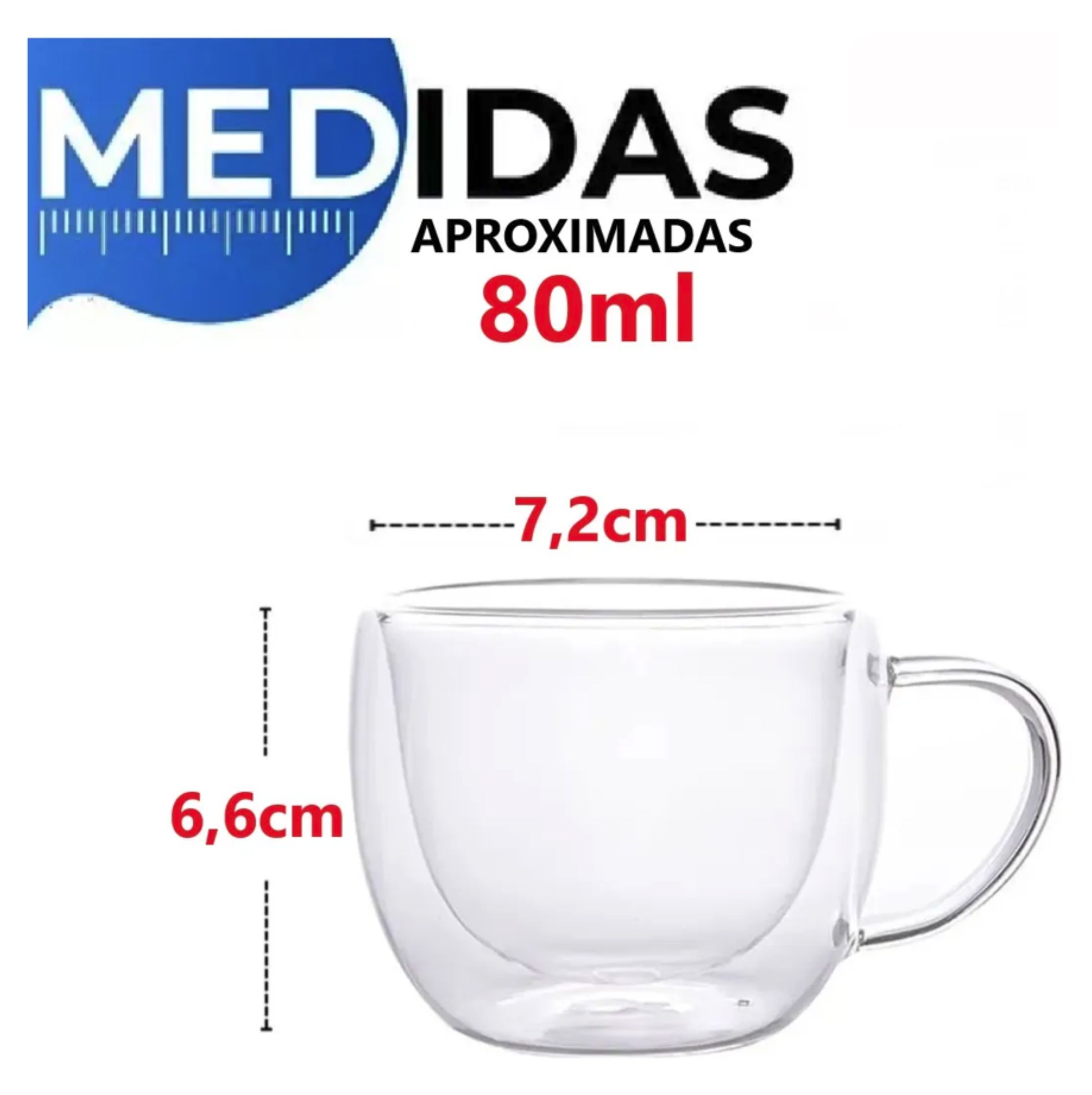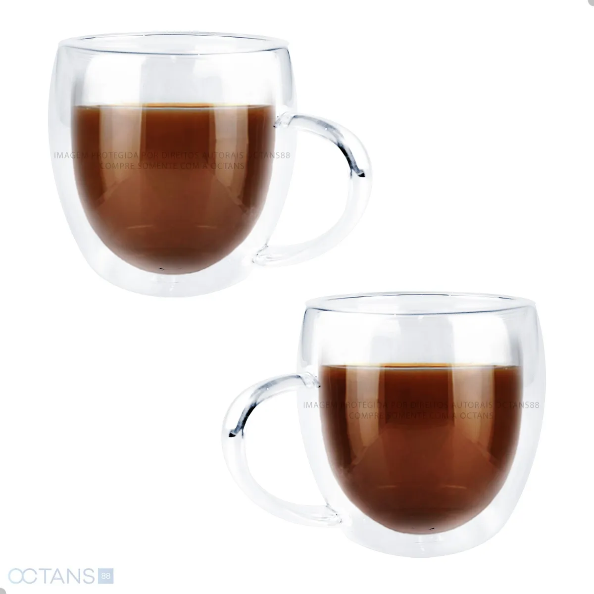 Xicaras de Café com Alça Vidro Borossilicato Parede Dupla 80ml Sxicara