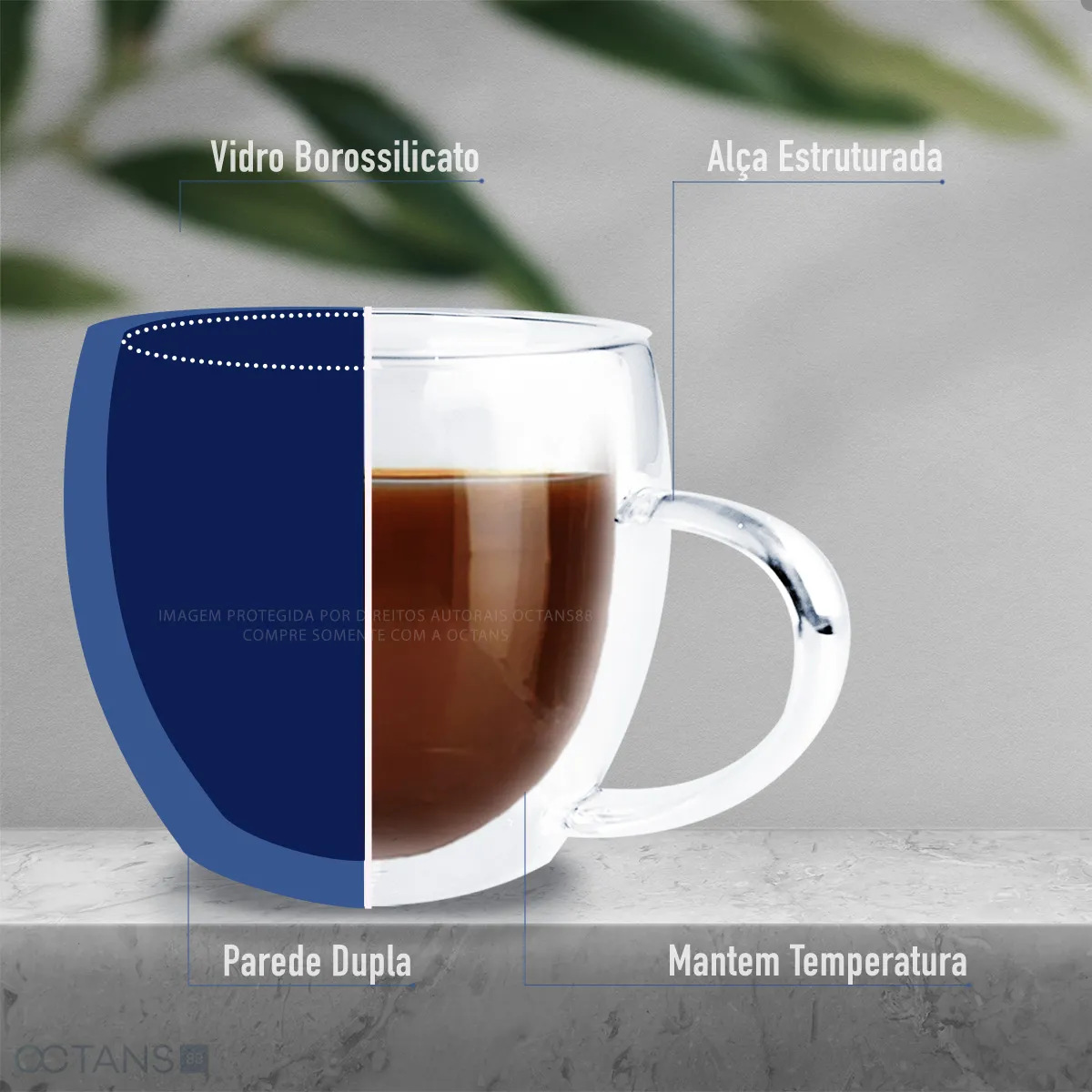 Linda Xícara de Café em Vidro Duplo Borossilicato com parede dupla, diametro da boca 7.2cm altura 6.6cm, possuí propriedades térmicas que mantem a temperatura do líquido por mais tempo e não queima os dedos, qualidade superior de vidro que proporciona transparência permitindo que veja a cor exata do líquido, a qualidade do vidro faz com que a xícara fique lisa e transparente, facilita a lavagem e não retêm odores de bebidas anteriores.